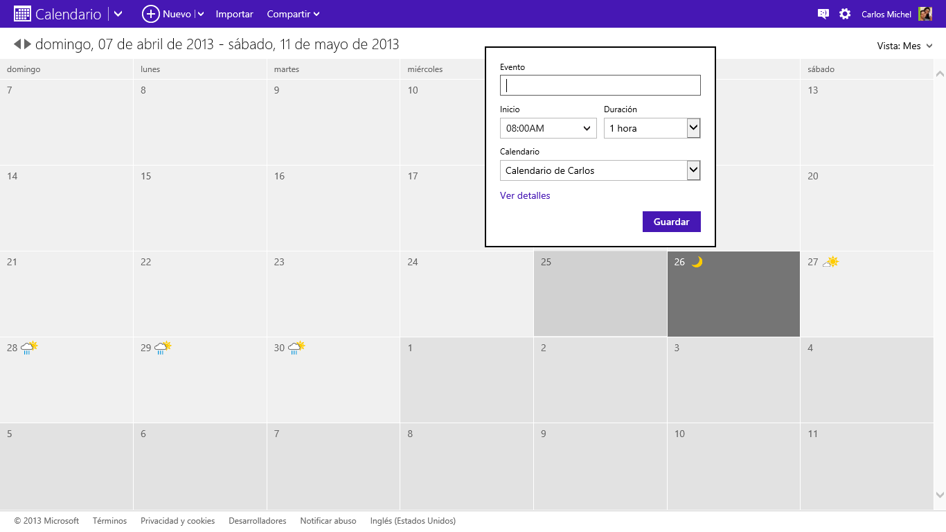 Utiliza el calendario integrado eficaz de Outlook para realizar un seguimiento de tus citas y programar reuniones con otros usuarios.