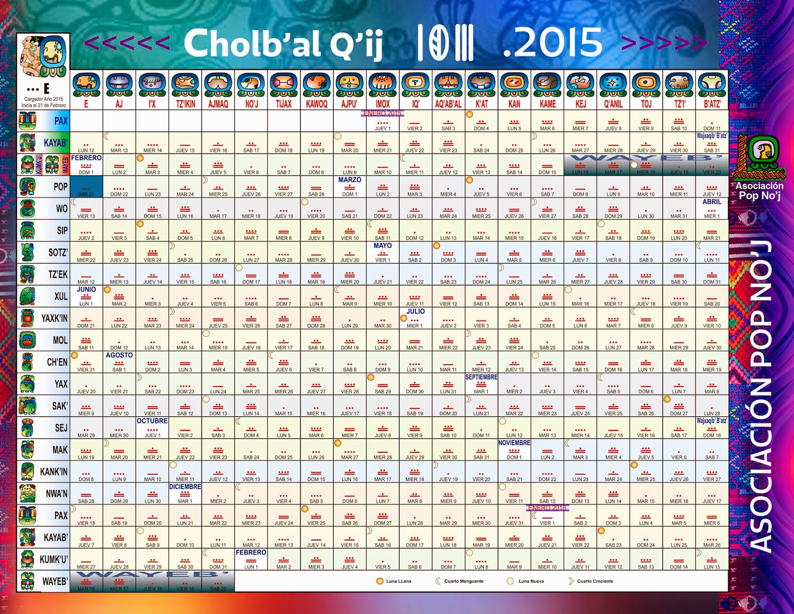 Calendario Maya Q U 0027 Anjob U 0027 Al 2024. Haga clic en el Botón Convertidor para ver la fecha correspondiente a la fecha del calendario maya de Cuenta Larga, tanto visualmente como numéricamente. Find the meaning of each day in the Tzolk'in calendar system here. En él se establecía una organización del tiempo que los mayas necesitaban para el desarrollo de su cultura. El Calendario Maya significaba la base de toda la estructura social, política y civil de la civilización. Dispones de una versión en PDF para descargar el Calendario escolar de. The Maya sacred calendar is called Tzolk'in in Yucatec Mayan and Chol Q'ij in K'iche' Mayan. This calendar is not divided into months. The Maya called it the "universal cycle.".